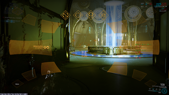 Cara menemukan synthesis target cukup mudah, gunakan synthesis scanner yang sebelumnya sudah kamu pasang di gear. Kemudian ikuti semacam aliran partikel berwarna oren dan biru sampai menemukan target. Jika belum bertemu dengan target, mungkin kamu belum mengunjungi beberapa tempat yang tidak terjamah. Tips lain adalah pastikan kamu sudah melewati berbagai ruangan, tekan tombol M untuk memperbesar mini map. Map ini nanti berfungsi untuk navigasi kamu dalam mencari target synthesis.
